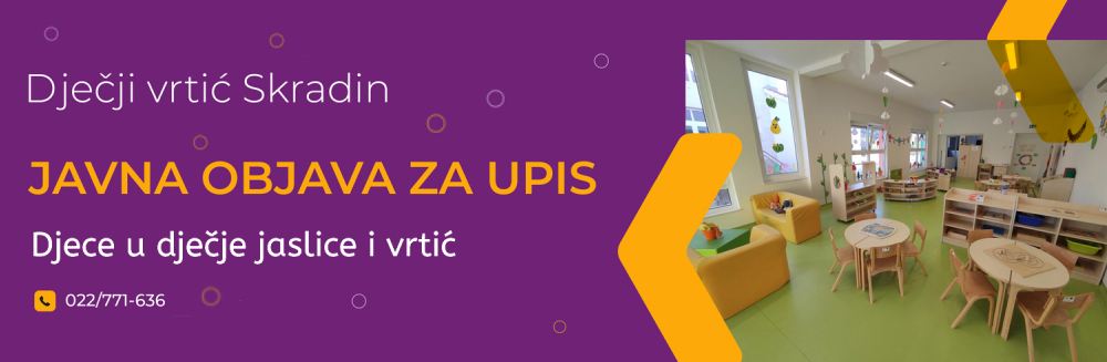 Na temelju članka 1.a Zakona o predškolskom odgoju i naobrazbi (NN 10/97, 107/07, 94/13, 98/19, 57/22,101/23 i 22/26), te Odluke o provođenju upisa djece u Dječji vrtić Skradin Upravnog vijeća KLASA: 601-01/26-01/01, URBROJ: 2182-3-1-26-01 od 27.03.2026. godine,...